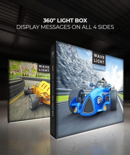 The New Light Backlit Display Kits are one of the thinnest tension fabric light boxes to hit the exhibit market. Within just a 50mm aluminum pipe profile (two inches), the Light frames an array of perfectly positioned LED lights to achieve an ultra-bright, evenly-diffused backlit display –making everything on the graphic look more brilliant and vibrant.